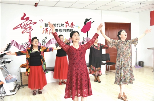 漢風(fēng)社區(qū)居民在社區(qū)群眾文化活動(dòng)室內(nèi),排練舞蹈,舞出美好新生活。
