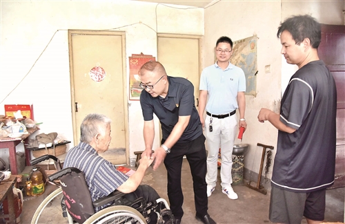 “七一”前夕,大龍湖街道黨工委書記宋偉峰(左二)在柳集社區(qū)走訪慰問困難群眾。