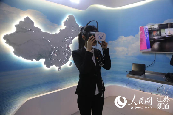 紅色教育基地參觀者正在利用“VR”技術(shù)體驗(yàn)實(shí)境黨課。連云區(qū)委宣傳部供圖
