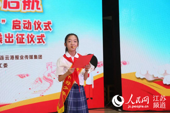 在連云港市“七彩的夏日”啟動(dòng)儀式暨連云區(qū)“小紅軍”紅色實(shí)踐出征儀式上,“新時(shí)代好少年”辛姝萱作為學(xué)生代表,向全市青少年發(fā)出利用假期開展“游覽一處紅色景點(diǎn)”等“七個(gè)一”活動(dòng),在紅色實(shí)踐中厚植愛黨愛國(guó)情懷。