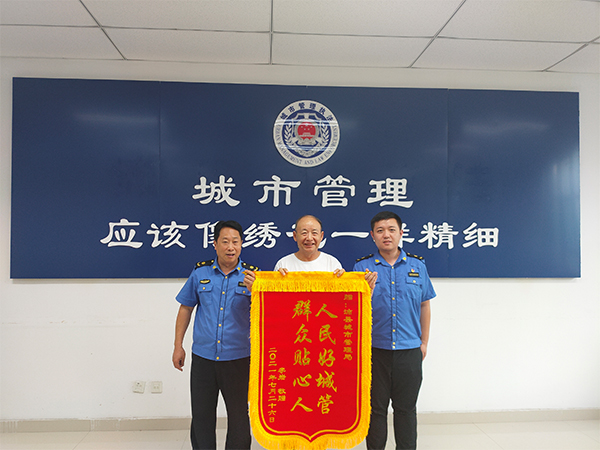 黃淮網(wǎng)(李崇)7月23日,市民李長標(biāo)將一面寫“人民好城管、群眾貼心人”的錦旗送至沛縣城管局,表達(dá)對(duì)沛縣城管局為民辦實(shí)事的感謝之情。
