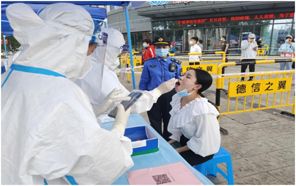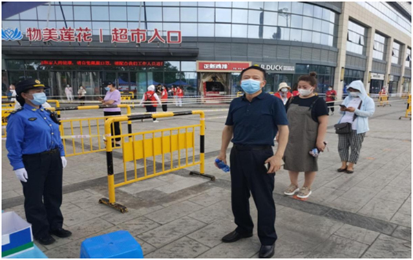 由于天氣炎熱,排隊市民較多,為保持良好的秩序,確保檢測工作有條不紊進行,沛縣城管局聯(lián)合街道辦整合資源,合理排兵布陣,執(zhí)法人員、街道工作人員及志愿者相互協(xié)調(diào),全方位做好物資保障、現(xiàn)場服務(wù)等工作,執(zhí)法管理人員把群眾當成親人,把檢測當成家事,引導群眾有序排隊,帶好口罩,一米線站位,核酸檢測點氣氛溫馨、秩序井然。