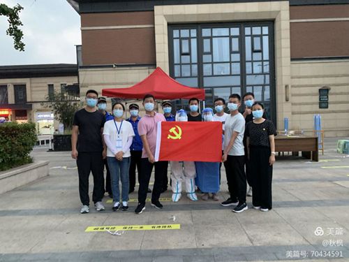 16日凌晨1點,檢測所需的遮陽棚桌椅、器械等設(shè)施、檢測材料、防護物資、宣傳牌板等材料陸續(xù)運達,社區(qū)黨委書記周振、副書記何麗身先士卒,不顧天氣炎熱,帶領(lǐng)社區(qū)工作人員、物業(yè)管理人員和志愿者連夜搬運到各檢測采樣點,接著緊鑼密鼓地布置現(xiàn)場,搭棚、擺放桌椅、接警戒線、安放提示標識、設(shè)立地面一米線標識、地面粘貼指示箭頭……,僅用半天時間,各個檢測點準備工作全部完成。為保證檢測工作順利進行,社區(qū)黨委充分發(fā)揮黨組織的戰(zhàn)斗堡壘作用和轄區(qū)內(nèi)共產(chǎn)黨員的先鋒模范作用,向黨員和居民發(fā)出了征集志愿者的號召,一時間,各微信群里此呼彼應(yīng),共產(chǎn)黨員、共青團員、復員軍人、青年居民、物業(yè)人員,更有許多離退休老黨員也積極報名加入志愿者行列,真可謂“一呼百應(yīng)”。在檢測的第一天晚上,社區(qū)全體工作人員與醫(yī)護人員和志愿者一直工作到凌晨,在兩天多的時間里,大家齊心協(xié)力,連續(xù)奮戰(zhàn),團結(jié)協(xié)作,沒有怨言,圓滿完成了這次特殊的演練任務(wù)。