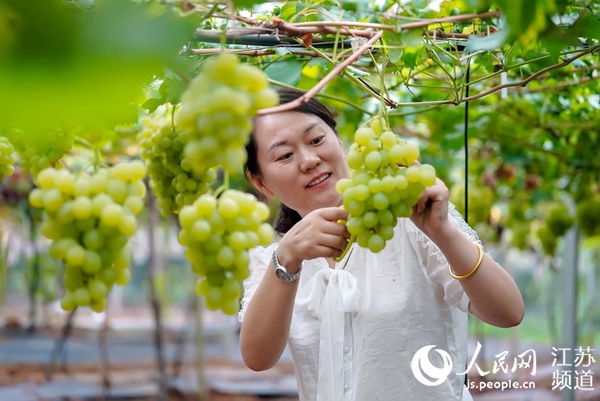 江蘇有76個(gè)縣(市、區(qū))屬于革命老區(qū),發(fā)展產(chǎn)業(yè)是老區(qū)振興的關(guān)鍵一招。葡萄種植是茅山鎮(zhèn)的支柱產(chǎn)業(yè),“丁莊葡萄”遠(yuǎn)近聞名。光一個(gè)丁莊村,就有近2000戶葡萄種植戶,種植面積2萬(wàn)多畝,葡萄是當(dāng)?shù)貙?shí)打?qū)嵉母幻窆。沒(méi)人來(lái)采摘,殷九兵卻沒(méi)怎么犯愁:“丁莊萬(wàn)畝葡萄專業(yè)合作聯(lián)社幫我們統(tǒng)一銷售,收購(gòu)的價(jià)格比一般商販要高35%左右。”