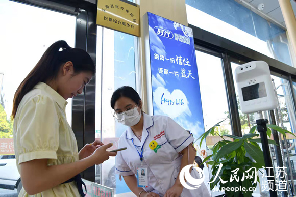 東海縣中醫(yī)院醫(yī)保辦工作人員為群眾辦理醫(yī)保業(yè)務(wù)。張開虎攝