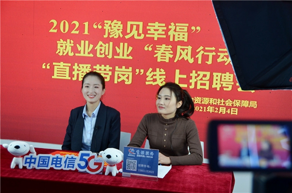 試驗(yàn)區(qū)與2021“豫見幸福”就業(yè)創(chuàng)業(yè)“春風(fēng)行動(dòng) 直播帶崗”線上招聘會(huì)。王彪攝