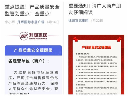 制作一份“提醒函”,督促落實(shí)主體責(zé)任。云龍區(qū)市場(chǎng)監(jiān)督管理局全領(lǐng)域深化“567+”常態(tài)化監(jiān)管,結(jié)合開學(xué)季、節(jié)假日等重點(diǎn)時(shí)段,聚焦食品、藥品、特種設(shè)備和產(chǎn)品質(zhì)量安全等重點(diǎn)工作,根據(jù)不同市場(chǎng)主體,分別制定了6類《產(chǎn)品質(zhì)量安全提醒函》,線上發(fā)布并覆蓋到轄區(qū)的大型消費(fèi)品商場(chǎng)、超市和批發(fā)市場(chǎng),線下發(fā)放到消防產(chǎn)品、燃?xì)馄骶呒芭浼、非醫(yī)用口罩、非標(biāo)三輪摩托車等重點(diǎn)產(chǎn)品經(jīng)營(yíng)者,督促各類市場(chǎng)主體自覺(jué)落實(shí)產(chǎn)品質(zhì)量安全主體責(zé)任。