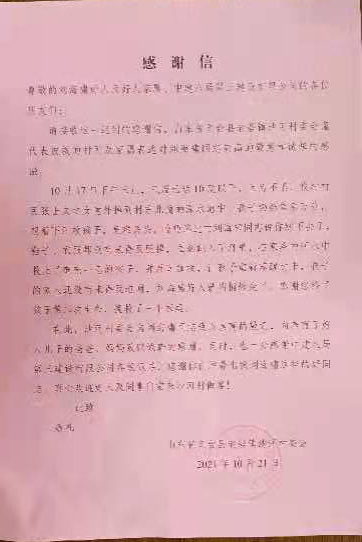 由于事發(fā)突然,忙于照顧孩子的劉勤英老人當(dāng)時(shí)未能來(lái)得及索要?jiǎng)⒑[的電話并致謝。事后,老人及家人經(jīng)過(guò)幾天四處打聽都未能找到劉海嘯。被救孩子的父親張士文因外出務(wù)工未能趕回,一再要求家人一定要找到救命恩人并致謝。最后,在臨近劉海嘯父母承包魚塘處種地的一位當(dāng)?shù)卮迕竦膸椭,劉勤英老人終于帶著刻有“英雄壯舉,舍己救人”字樣的錦旗和由沙河村委會(huì)撰寫的感謝信一并送給劉海嘯,并連連致謝!于是出現(xiàn)了開頭的那一幕。