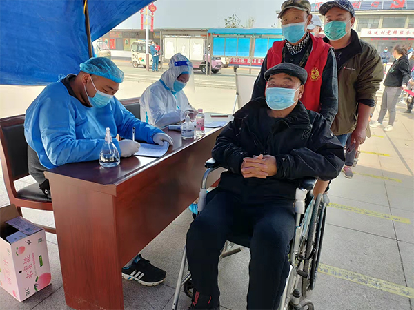 3月30日上午,紫莊鎮(zhèn)進(jìn)行全員核酸檢測,該鎮(zhèn)油坊村民兵連長楊增權(quán)一大早就來到村核酸采樣點(diǎn),布置桌椅、協(xié)助醫(yī)護(hù)人員維持秩序,幫助行動(dòng)不便的老人排隊(duì)等,忙碌的腳步從未停歇。