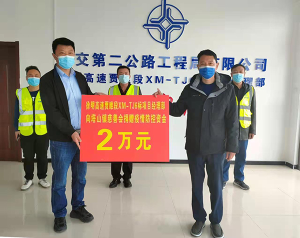 在項目建設(shè)工地,各項目辦實行全封閉式管理,加強了施工工地疫情防控,嚴格查驗健康碼、行程碼等,守住疫情防控項目建設(shè)線。面對徐州市突發(fā)疫情,中鐵六局XM-TJ5標項目經(jīng)理部主動請纓前往賈汪汴塘參與防疫志愿服務(wù);徐明高速6標項目經(jīng)理部向徐州市賈汪區(qū)塔山鎮(zhèn)慈善會捐贈疫情防控資金20000元,共同助力抗疫,彰了公路建設(shè)部門的責任和擔當。