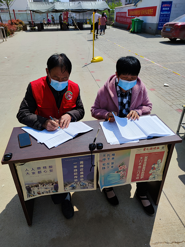 “讓我歇歇,我還能行”。在烈日高溫下連續(xù)抗戰(zhàn)了四輪全員核酸檢測(cè)任務(wù),終究在第五輪全員核酸中身穿嚴(yán)密防護(hù)服的她有些扛不住了,臉色發(fā)白,頭也開始發(fā)暈,但這并沒有讓她退卻,只休息了片刻,便又再一次踏上了“戰(zhàn)場(chǎng)”。她就是薛湖村疫情防控志愿者陳雪晴,每日凌晨5點(diǎn)隨著手機(jī)鬧鐘想起,她便匆匆離開睡夢(mèng)中的孩子準(zhǔn)時(shí)來到薛湖村全員核酸檢測(cè)場(chǎng)地。整理受檢人員信息底冊(cè),為每個(gè)點(diǎn)位精確配備相對(duì)應(yīng)的檢測(cè)物資,等等,確保各項(xiàng)前期保障工作落實(shí)到位后,她便穿上“大白服”,開始了一天的核酸檢測(cè)采樣輔助工作,每天經(jīng)她手錄入的上千條人員信息沒出過任何錯(cuò)誤,她是薛湖村青年志愿者中的一員,也是整個(gè)徐莊鎮(zhèn)無(wú)數(shù)青年志愿者的一個(gè)代表,她是“最可愛的人”。