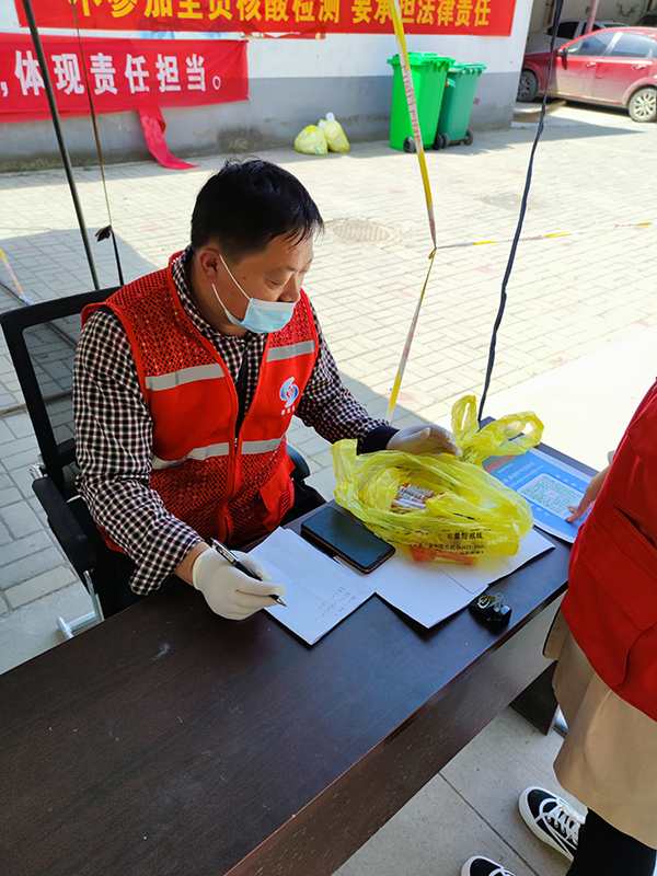 “還是我來吧,我對(duì)這些人員的情況比較熟”。推進(jìn)村民疫苗接種工作;協(xié)助做好“3+11”“7+7”居家隔離舉措以及上門核酸采集工作;落實(shí)部分貨運(yùn)車輛閉環(huán)管理措施,這一項(xiàng)項(xiàng)極具挑戰(zhàn)又意義重大的疫情防控工作現(xiàn)在都抗在了他的肩上,他就是薛湖村黨支部副書記薛長(zhǎng)軍。疫情防控工作繁多復(fù)雜,做為一名黨員干部,他總是爭(zhēng)著做任務(wù)最重處理起來最困難的那一項(xiàng),經(jīng)常工作到大半夜,方便面已經(jīng)成了他最近經(jīng)常吃的食物。全員核酸檢測(cè)工作中,他又扛起了樣本轉(zhuǎn)運(yùn)和數(shù)據(jù)統(tǒng)計(jì)的繁重任務(wù),每天數(shù)千份的樣本轉(zhuǎn)運(yùn),每次轉(zhuǎn)運(yùn)都做到細(xì)致周密,數(shù)據(jù)統(tǒng)計(jì)也沒有絲毫偏差。他用身體力行踐行了一名共產(chǎn)黨員的錚錚誓言,用頑強(qiáng)堅(jiān)守詮釋了一名共產(chǎn)黨員的理想信念。他是薛湖村黨支部的一名黨員干部,也是整個(gè)徐莊鎮(zhèn)數(shù)不勝數(shù)參與疫情防控黨員中的一面旗幟,他是“最可愛的人”。