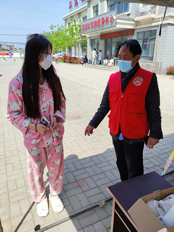 “我沒有什么物質(zhì)財(cái)富留給我的子孫,無(wú)私奉獻(xiàn)的精神,就是我能留給他們的最好的‘傳家寶’”。他叫薛井群,是薛湖村的一名工作人員,自疫情發(fā)生以來,村里幾處卡口經(jīng)常能看到他的身影,給過往的村民測(cè)量體溫,查驗(yàn)兩碼、登記信息、還會(huì)指著旁邊醒目的宣傳海報(bào),給村民講解最新的疫情防控政策和基本防控常識(shí)。渾厚有力的嗓音,健壯挺拔的身板,一副精神矍鑠的樣子,不熟悉他的人絕對(duì)猜不到他已經(jīng)是一位年近六旬的老人。就是這位已經(jīng)70歲的老人,在疫情發(fā)生的第一時(shí)間,便早早穿上了紅馬甲,戴上了紅袖章,不分白天黑夜忙碌在疫情防控第一線。不僅成為了薛湖村老年“紅馬甲”中的一員,也是整個(gè)徐莊鎮(zhèn)成百上千老年“紅馬甲”的一個(gè)縮影,他是“最可愛的人”。