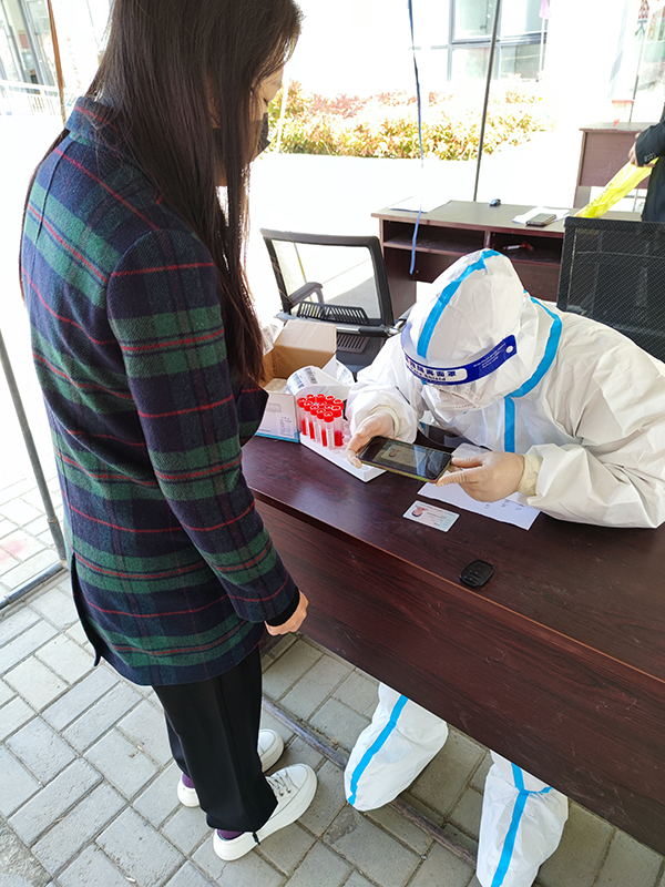 陳雪晴 在用手機(jī)錄入核酸檢測(cè)人員信息