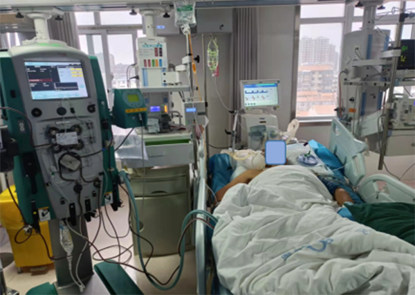 剛到睢寧縣人民醫(yī)院的第一天,前往支援的徐醫(yī)附院急診醫(yī)學科薛婷副主任醫(yī)師、陳可副主任醫(yī)師就遇到了一個非常棘手的患者——有機磷農(nóng)藥中毒,伴有左側青光眼和高血壓病,氣管插管呼吸機支持呼吸,循環(huán)衰竭(大劑量血管活性藥物維持),呼吸快,心率快,高熱,針尖樣瞳孔,乙酰膽堿酯酶只有171U/L,Lac 6.5mmol/L。當時家屬強烈要求轉(zhuǎn)徐州治療。面對重度有機磷中毒患者,徐醫(yī)附院援睢寧縣人民醫(yī)院管理團隊團隊長、徐醫(yī)附院副院長燕憲亮,睢寧縣人民醫(yī)院副院長翁華高度重視,燕憲亮副院長親自查看患者、指揮制訂救治方案并與家屬進行充分的溝通交流。家屬即刻表示相信徐醫(yī)附院支援專家,不再要求轉(zhuǎn)院。薛婷副主任醫(yī)師、陳可副主任醫(yī)師利用自己過硬的專業(yè)知識,全面評估患者的病情,頂住壓力,沉著應對,給予液體復蘇、調(diào)整阿托品用量、加用氯解磷定和鹽酸戊乙奎醚等,經(jīng)過積極處理,很快穩(wěn)定住患者的生命體征,逐步停用血管活性藥物。針對患者膽堿酯酶始終維持在極低水平,薛婷副主任醫(yī)師當機立斷,強化提升救治手段,必須進行床旁血液凈化,首次在呼吸危重癥(內(nèi)科)ICU成功開展血液凈化技術。經(jīng)過3次血液凈化及特效解毒劑的規(guī)范化治療,患者病情逐步好轉(zhuǎn),并順利轉(zhuǎn)出ICU,現(xiàn)乙酰膽堿酯酶恢復正常并康復出院。在患者救治過程中,薛婷副主任醫(yī)師不僅在診療上給予專業(yè)指導,還針對每天的病歷書寫進行認真細致的完善,每日與家人進行充分的溝通交流。家屬從剛開始對縣人民醫(yī)院的不信任、不理解,到最后的深信不疑、感激不盡,離不開所有醫(yī)護人員的共同努力。睢寧縣人民醫(yī)院參與救治的醫(yī)護人員也倍感鼓舞。