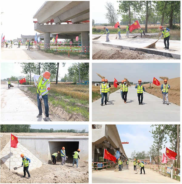 黃淮網(wǎng)(馮毅) 為進(jìn)一步推進(jìn)宿連高速文明施工管理工作,提高參建人員的文明施工意識,有效提升工程綠色化、精細(xì)化管理水平,打造文明施工現(xiàn)場,5月31日上午,中鐵七局宿連高速4標(biāo)項(xiàng)目黨支部積極響應(yīng)宿連高速公路功能型黨總支開展的“黨旗一線飄揚(yáng) 打造文明工地”主題黨日活動,組織項(xiàng)目廣大黨員干部、團(tuán)員青年在施工現(xiàn)場和沿線綠化帶進(jìn)行垃圾清除作業(yè),全力使便道干凈整潔,綠化成果保持。清理過人通道雜物,疏通農(nóng)用灌溉水涵,確保群眾近期小麥夏收和下地插秧作業(yè)道路暢通。