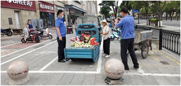 在整治行動(dòng)過(guò)程中,執(zhí)法人員堅(jiān)持問(wèn)題導(dǎo)向和目標(biāo)導(dǎo)向,及時(shí)指出經(jīng)營(yíng)者存在的問(wèn)題,明確告知店主商品擺放范圍,即時(shí)將占道商品移至店內(nèi)經(jīng)營(yíng)。執(zhí)法人員堅(jiān)持群眾利益至上,以實(shí)際工作體現(xiàn)城管的溫情與責(zé)任,做到能現(xiàn)場(chǎng)整改的,立即整改到位;不能現(xiàn)場(chǎng)改的,要求限期改到位;對(duì)個(gè)別經(jīng)營(yíng)戶的不合理要求,教育疏導(dǎo)到位;對(duì)存在經(jīng)營(yíng)困難的商戶幫助到位;對(duì)違法經(jīng)營(yíng)行為,堅(jiān)決處理到位。同時(shí),組織商戶對(duì)照《門(mén)前三包責(zé)任書(shū)》,明確并履行自己的義務(wù),守好自家的“責(zé)任田”,積極參與城市管理活動(dòng),擔(dān)當(dāng)起維護(hù)良好經(jīng)營(yíng)秩序、美化市容市貌的責(zé)任,建立起以文明創(chuàng)建引領(lǐng)城市管理的長(zhǎng)效機(jī)制。
