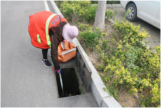 環(huán)衛(wèi)工人清掏污水井里的垃圾