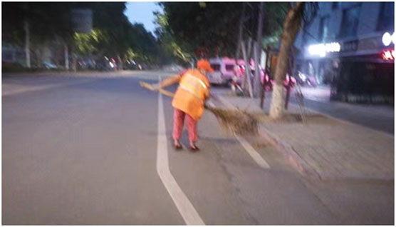 晚上城區(qū)道路上環(huán)衛(wèi)工人工作的身影
