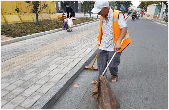 下午3點(diǎn)左右,正值暑氣蒸人,從事環(huán)衛(wèi)工作10多年的環(huán)衛(wèi)工人劉漢平踩著滾燙的路面,在漢城路新“蘇果”一帶路面清掃保潔。“蘇果”路段人流密集,劉漢平不停穿梭著清掃、檢查路面,看到有煙頭、碎屑等雜物,即時(shí)彎腰撿起。雖然高溫工作已習(xí)以為常,但還是腰酸背痛,特別辛苦。樸實(shí)的環(huán)衛(wèi)工人劉師傅這樣說,“我們用我們的感情和責(zé)任愛護(hù)關(guān)心著我們的城市。既然這個(gè)路段分給我們打掃,我們就要有信心和能力把這份工作做好。我們每天從清晨4點(diǎn)多一直工作到晚上8點(diǎn),累當(dāng)然是累,但是保潔必須有人去干,能用自己的付出掃去道路的污點(diǎn),為大家掃出美麗潔凈的環(huán)境,看到一條條街道經(jīng)過我們的清掃變得干凈整潔,就覺得自己再累再苦都值啦。沛縣城管局和環(huán)衛(wèi)所的領(lǐng)導(dǎo)非常關(guān)心我們的工作,不斷改善我們工作的條件,建成了“環(huán)衛(wèi)驛站”,特別是氣溫上升以后,經(jīng)常帶純凈水等防暑降溫用品慰問我們,我們感覺到很滿意,工作起來干勁特別大,一心一意想著怎么把工作干得更好。”這就是環(huán)衛(wèi)工人的心聲!