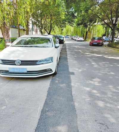 小區(qū)內(nèi),一排排的房子粉刷一新,健身器械齊全,環(huán)境干凈整潔,你很難相信這是一個(gè)建成已經(jīng)二十多年的老舊小區(qū)。但是,走在小區(qū)新修的柏油路上,記者發(fā)現(xiàn)瀝青路面呈現(xiàn)出三種不同的顏色,主體路面是深灰色的,可以看得出也是剛鋪設(shè)不久的瀝青。而在很多道路的交叉口處,路面上出現(xiàn)的寬四五十厘米長(zhǎng)、幾十米的深灰色路面“補(bǔ)丁”清晰可見(jiàn)。