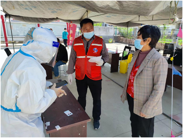 “讓我歇歇,我還能行”。在烈日高溫下連續(xù)抗戰(zhàn)了六輪全員核酸檢測任務(wù),終究在第七輪全員核酸中身穿嚴(yán)密防護服的她有些扛不住了,臉色發(fā)白,頭也開始發(fā)暈,但這并沒有讓她退卻,只休息了片刻,便又再一次踏上了“戰(zhàn)場”。她就是薛湖村疫情防控青年黨員苗佳,每日凌晨5點隨著手機鬧鐘想起,她便匆匆離開睡夢中的孩子準(zhǔn)時來到薛湖村全員核酸檢測場地。整理受檢人員信息底冊,為每個點位精確配備相對應(yīng)的檢測物資,等等,確保各項前期保障工作落實到位后,她便穿上“大白服”,開始了一天的核酸檢測采樣輔助工作,每天經(jīng)她手錄入的上千條人員信息沒出過任何錯誤,她是薛湖村青年黨員中的一員,也是整個徐莊鎮(zhèn)無數(shù)參加疫情防控青年黨員的一個代表,他們主動請纓,用實際行動踐行著年輕黨員敢于擔(dān)當(dāng)、無私奉獻的精神。