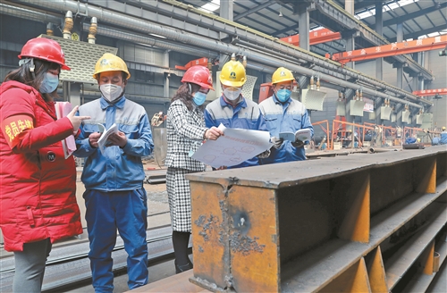 泉山區(qū)桃園街道機(jī)關(guān)干部到轄區(qū)企業(yè)送宣傳資料。本報(bào)記者 齊浩 攝
