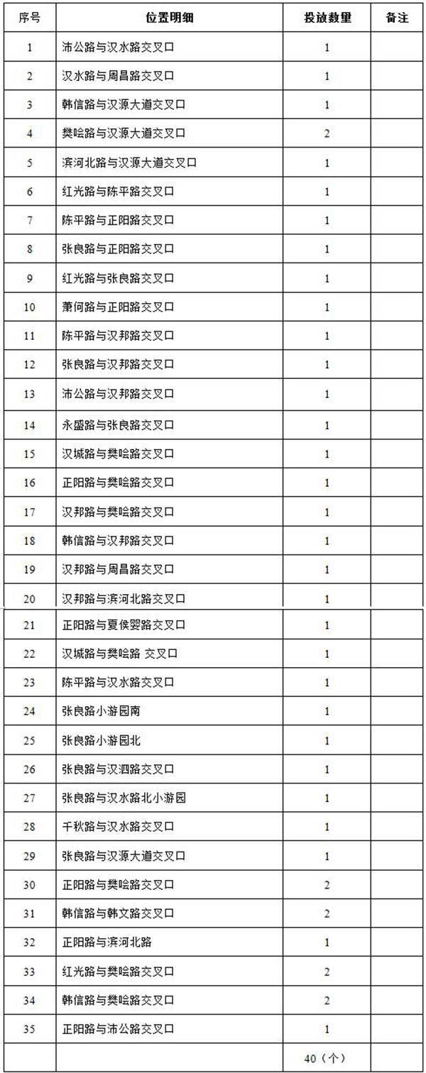 新城區(qū)各路口祭祀桶投放計(jì)劃位置表