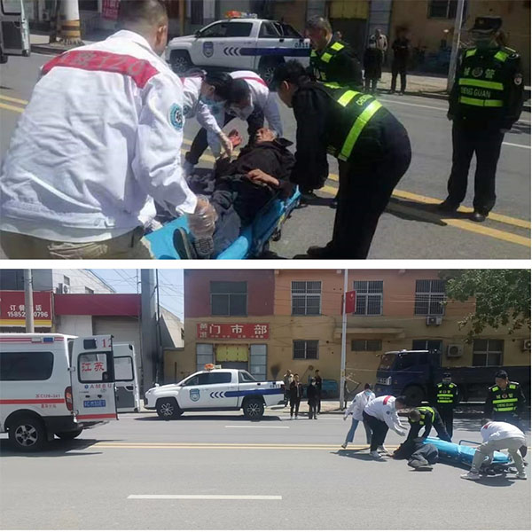 “人命關(guān)天,抓緊時(shí)間先救人!”徐華臨抓緊招呼執(zhí)法隊(duì)員上前。在過(guò)程中,徐華臨了解到,原來(lái)電動(dòng)三輪車的車主載著80多歲的哥哥去看病,二人行駛至此處時(shí),車主去面粉店詢問(wèn)價(jià)格,便將三輪車?吭诼愤。結(jié)果另一輛過(guò)往的三輪車將車上的老人撞倒在地,待群眾發(fā)現(xiàn)時(shí)肇事者已經(jīng)逃跑。