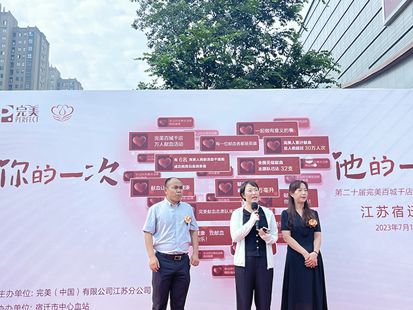 開幕式上,完美江蘇分公司徐靜萍經(jīng)理在活動現(xiàn)場表示:完美(中國)公司自創(chuàng)建以來,始終秉持“取之社會,用之社會”的公益理念。“多年來,我們在做強(qiáng)、做優(yōu)產(chǎn)品與服務(wù)的同時,始終履行社會責(zé)任,熱心公益事業(yè)。”徐經(jīng)理強(qiáng)調(diào),為了幫助到更多亟需用血的人,我們會將這一份“熱血”傳承下去。今后將會一如既往地支持宿遷市血液中心無償獻(xiàn)血工作,共同呼吁更多的人加入到無償獻(xiàn)血隊伍中,“完美人多年的執(zhí)著與堅守,也充分彰顯了公司良好的企業(yè)文化。”
