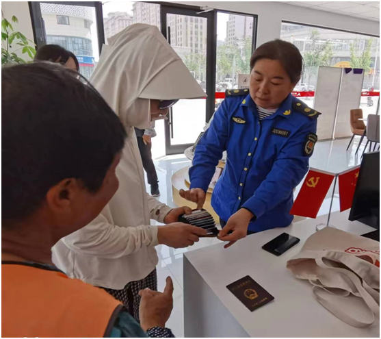 撿到錢包的環(huán)衛(wèi)工人劉素連已經(jīng)從事了多年的“城市美容”工作。8月23日上午十點,劉素連在九龍城打掃衛(wèi)生過程中撿到一個放有許多證件的錢包,原地等候多時遲遲不見失主前來尋找,便將錢包交給九龍城“沛公驛”的城管志愿者。隨后,負責(zé)九龍城“沛公驛”的新城區(qū)女子中隊隊長李媛對錢包內(nèi)物品進行清點和登記,并根據(jù)相關(guān)信息與失主取得了聯(lián)系。失主得知錢包被好心人撿到,詢問位置后,迅速來到九龍城“沛公驛”,李媛隊長認真核對失主的相關(guān)信息,在確認信息無誤后才把錢包還給失主。