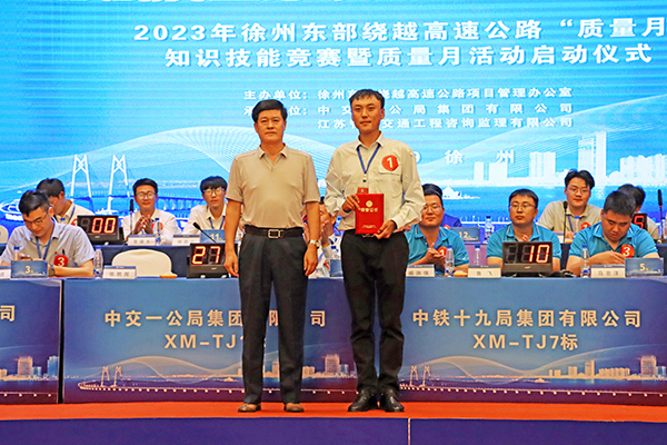 徐州市交通運輸局黨委委員、副局長薄立明為本次活動拉開帷幕,并作總結(jié)致辭。他表示所有參賽者展現(xiàn)了優(yōu)秀的學習能力、卓越的知識儲備和過硬的團隊合作精神,并對所有參賽者表示熱烈的祝賀!質(zhì)量安全事關人民群眾生命財產(chǎn)安全,他提出三點要求:一是要深化認識,牢固樹立質(zhì)量第一的思想自覺;二是要狠抓落實,全面推進質(zhì)量工作向縱深發(fā)展;三是要積極創(chuàng)新,不斷提升質(zhì)量管理的效率和效果。他強調(diào),全體參建者要不斷提升專業(yè)技能和業(yè)務水平,為我市交通運輸事業(yè)高質(zhì)量發(fā)展貢獻力量。(圖:趙崢)