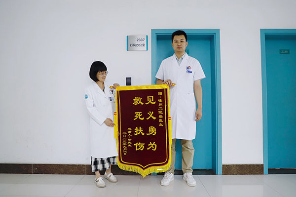 黃淮網(wǎng)(孟夢(mèng)) 9月12日,兩位先生來(lái)到徐醫(yī)附院行風(fēng)辦,進(jìn)門連連道謝,稱:“我們是來(lái)送錦旗的,要不是柴醫(yī)生的見(jiàn)義勇為,后果不堪設(shè)想。”其中一位頭上還包著紗布的先生,接著說(shuō):“我們只知道他姓柴,在你們單位工作,他沒(méi)有留下姓名和聯(lián)系方式,真的很感謝他救了我。”