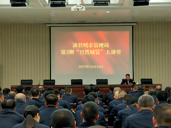 黃淮網(wǎng)(李崇 劉瑞)為深入學(xué)習(xí)貫徹黨的二十大精神,認(rèn)真落實黨的二十大報告關(guān)于“著力解決好人民群眾急難愁盼問題,提高公共服務(wù)水平”的要求,沛縣城管局“百姓城管”大講堂第3期暨《凝聚新目標(biāo) 踐行新理念 聚力打造新時代城市管理沛縣特色》專題講座開講,張冠軍局長主講,局班子成員及全體執(zhí)法人員、輔助人員三百余人參加講座。
