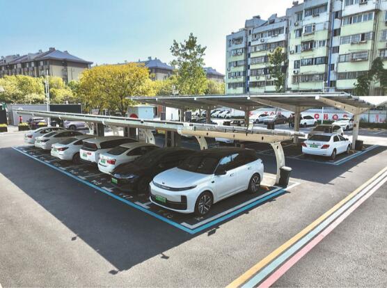 南京市建鄴區(qū)湖西街“光儲充換”生態(tài)示范站日前建成投運。示范站占地約3500平方米,利用車位棚頂、休息室屋頂建設(shè)光伏系統(tǒng),配合分布式儲能設(shè)備,建成光儲充換綜合能源站,共設(shè)有71個車位,其中36個直流快速充電車位、35個普通車位。 本報記者 范俊彥 攝