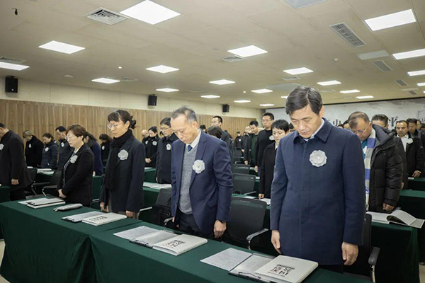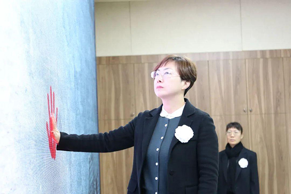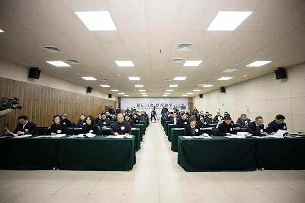 參加主會場悼念儀式的代表們胸帶白花,默然肅立,向南京大屠殺死難者默哀。“龍?bào)椿⒕,彝?xùn)鼎銘,繼往開來,永志不忘!”默哀畢,主會場及分會場參與人員齊誦《和平宣言》。隨后,代表們秉菊懷殤,向南京大屠殺死難者獻(xiàn)花,并參觀南京大屠殺史實(shí)展——《人類的浩劫:1937南京大屠殺》。