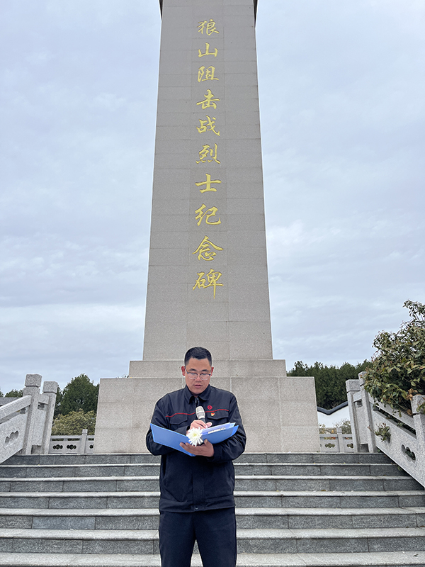 活動伊始,眾人整齊列隊,高唱國歌。隨后,大家認(rèn)真聆聽烈士們的光輝事跡,敬獻花籃于烈士紀(jì)念碑前,并集體默哀,接著,黨員們重溫入黨誓詞,眾人繞行塔周,瞻仰烈士紀(jì)念碑,并一一向烈士墓碑敬獻鮮花,以表達對革命先烈英勇無畏、無私奉獻精神的深深感動與深切緬懷。最后,眾人參觀了展廳,透過豐富的展品和詳實的資料,更加深入的了解了狼山阻擊戰(zhàn)的過程和意義,激發(fā)了眾人對先烈們的崇高敬意和無限追思。