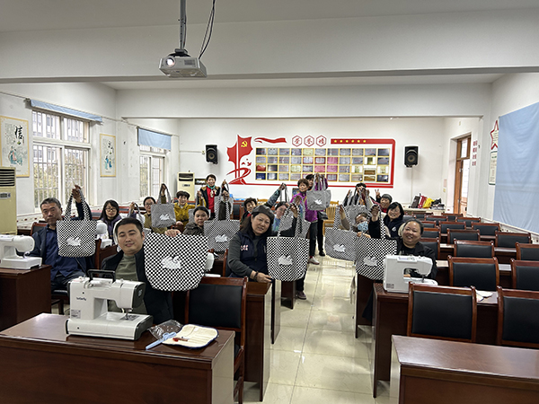 百年民族品牌“蝴蝶牌縫紉機(jī)”生產(chǎn)廠家,為了幫助我完成村里布藝DIY活動,帶了物料,自掏腰包,叫了貨拉拉從寶山運來18臺縫紉機(jī),手把手教村民如何制作布藝。學(xué)會了布藝制作的村民帶著自己的“作品”歡天喜地地回家了。如今,每每看到村活動室里他們留下的大件布藝作品,就會想起他們臨走時面對我的感謝說的一句笑話:有什么辦法,被你這位化緣書記感動了呀。