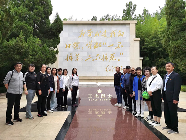 接著,大家在毛澤東主席題詞:“我贊成這樣的口號,叫做‘一不怕苦,二不怕死’”為背景的王杰烈士紀念碑前,分列兩側,合影留念。