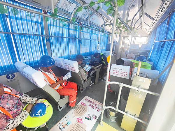 空調(diào)車內(nèi)還配備了應(yīng)急醫(yī)療箱、飲用水、藿香正氣水等應(yīng)急物資,以及手持搖扇等降溫物品。同時(shí),車內(nèi)還張貼了心肺復(fù)蘇、中暑、灼傷等急救知識(shí)與企業(yè)文化海報(bào),讓工人們?cè)谙硎芮鍥龅耐瑫r(shí),也能學(xué)習(xí)到實(shí)用的急救技能,增強(qiáng)自我保護(hù)意識(shí)和應(yīng)對(duì)突發(fā)狀況的能力。