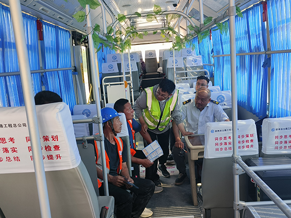 徐明高速賈睢段XM-LM3標(biāo)項(xiàng)目部將移動(dòng)空調(diào)車開進(jìn)施工一線
