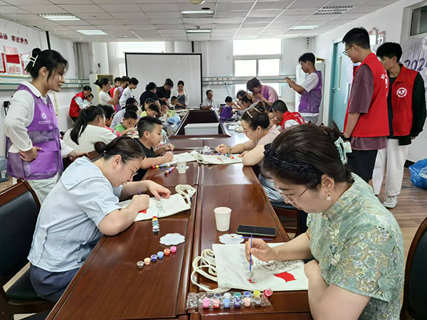 活動的第三個環(huán)節(jié)是親子共繪“新長征之路”敬獻(xiàn)建軍節(jié),在帆布包上,患兒和家長、小小志愿者、志愿者們一起用環(huán)保丙烯顏料繪制八一主題的作品,表達(dá)美好的祝愿之情。