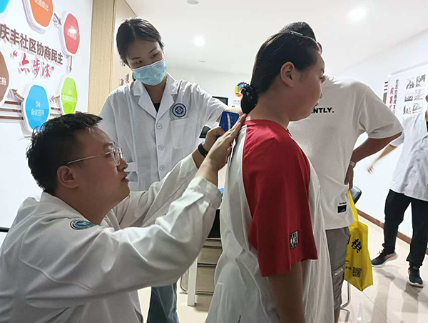在現(xiàn)場互動環(huán)節(jié),學生和家長紛紛舉手提問,提出了一系列有關(guān)脊柱側(cè)彎的疑問,項主任微笑著一一耐心解答。講座結(jié)束后,項主任和她的團隊還為現(xiàn)場的孩子們做了脊柱側(cè)彎及足踝的義務篩查,并對篩查出的問題與孩子和家長進行了深入溝通。