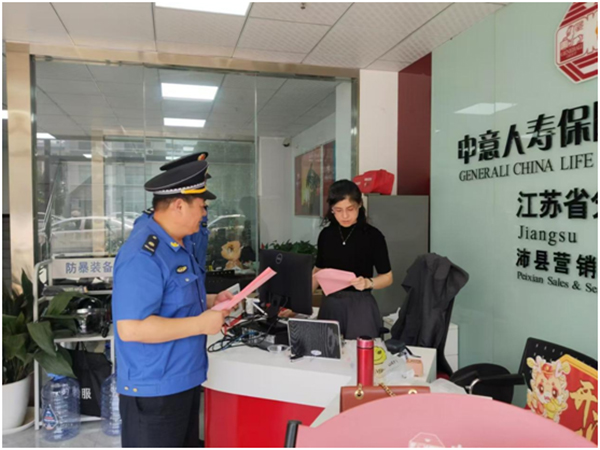 城管局工作人員進(jìn)商鋪進(jìn)行普法宣傳