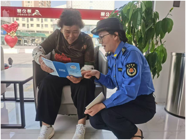 城管局工作人員在驛站進(jìn)行普法宣傳
