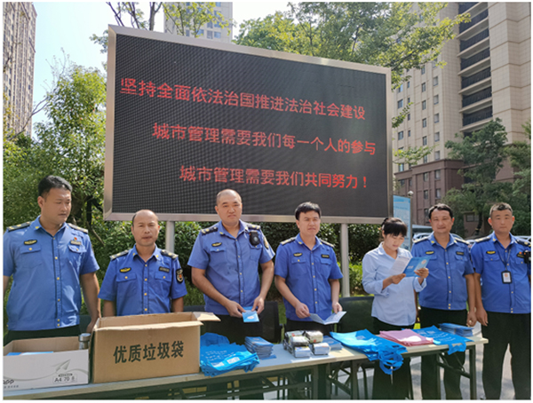 城管局工作人員在好人廣場進(jìn)行普法宣傳