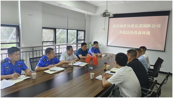 城管局工作人員進(jìn)企業(yè)進(jìn)行普法宣傳
