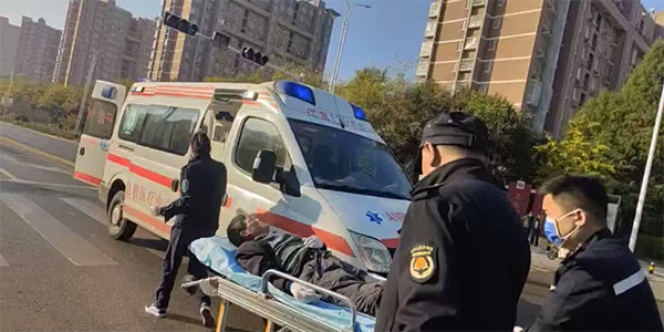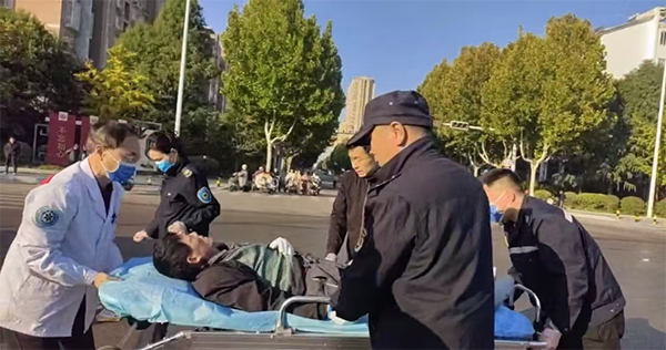 巡查至此的執(zhí)法隊(duì)員李永志、劉東兩人二話不說(shuō)立即下車前去查看,劉東立即撥打120呼叫救援,李永志趕忙詢問(wèn)老人情況,兩人維護(hù)現(xiàn)場(chǎng)秩序疏散圍觀人員避免老人受到二次傷害以及交通堵塞。老人當(dāng)時(shí)情況較差,處于昏迷狀態(tài),待120到達(dá)現(xiàn)場(chǎng)后,經(jīng)過(guò)醫(yī)護(hù)人員的初步查看和了解,李永志及醫(yī)護(hù)人員小心翼翼地將老人抬上擔(dān)架并抬上救護(hù)車。