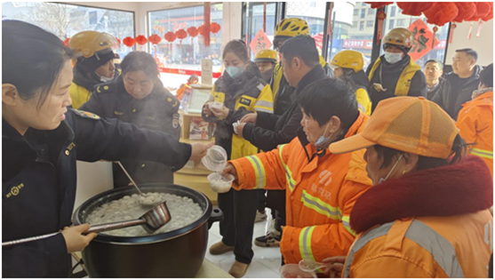 “祝大家元宵節(jié)快樂(lè),快來(lái)吃湯圓了。”“大娘,湯圓剛出鍋,小心別燙了手,我給您放在桌子上。”在愛(ài)心驛站內(nèi),驛站工作人員將一碗碗熱騰騰的湯圓送到環(huán)衛(wèi)工人、快遞小哥手中。大家圍坐在一起,一邊吃著甜糯的湯圓,一邊互道新春的祝福。
