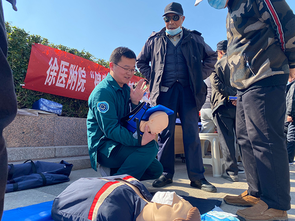 活動(dòng)現(xiàn)場(chǎng),徐醫(yī)附院神經(jīng)內(nèi)科、急診醫(yī)學(xué)科、全科醫(yī)學(xué)科、中醫(yī)科、護(hù)理部等多科室、部門的醫(yī)護(hù)專家面對(duì)面接受群眾咨詢,開展健康義診,給予血壓、血糖監(jiān)測(cè),提供慢病管理和中醫(yī)藥文化推廣,同時(shí)進(jìn)行心肺復(fù)蘇、海姆立克法急救技能培訓(xùn)實(shí)操,指導(dǎo)群眾學(xué)習(xí)體驗(yàn)急救技術(shù)。徐醫(yī)附院團(tuán)委志愿者發(fā)放內(nèi)容多樣的健康科普宣傳資料。大家共同努力,提升群眾健康水平和文明素養(yǎng),促進(jìn)“人人當(dāng)好自己健康第一責(zé)任人”的理念深入人心。